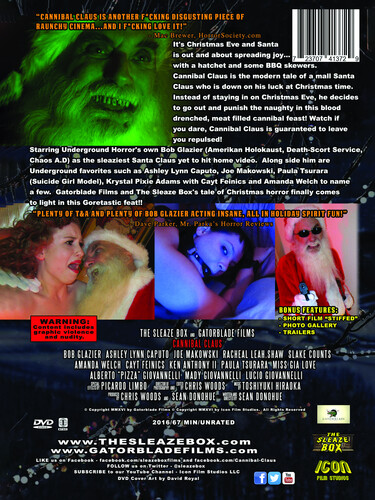 It's Christmas Eve and Santa is out spreading joy... with a hatchet and some BBQ skewers. Cannibal Claus is the modern tale of a mall santa claus who is down on his luck at Christmas time. Insead of staying in on Christmas Eve, he decides to go out and punnish the naughty in this blood drenched, meat filled cannibal feast! Watch if you dare, Cannibal Claus is guaranteed to leave you repulsed!