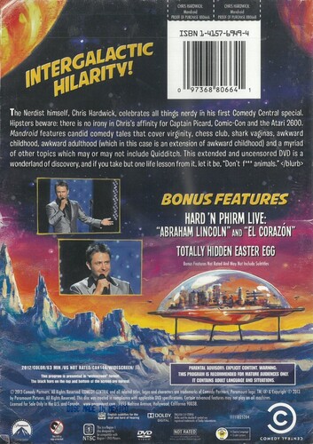 The Nerdist himself, Chris Hardwick, celebrates all things nerdy in his first Comedy Central special. Hipsters beware: there is no irony in Chriss affinity for Captain Picard, Comic-Con and the Atari 2600. MANDROID features candid tales that cover virginity, chess club, shark vaginas, awkward childhood, awkward adulthood (which in his case is an extension of childhood) and a myriad of other topics which may or may not include Quidditch. This extended and uncensored DVD is truly a wonderland of discovery.