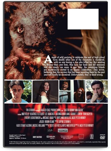 A night of wild partying to celebrate the end of high school turns deadly when one of the classmates is murdered, with no one having a clue who killed her. Not wanting to destroy their own lives, they bury her body and tell everyone that she simply ran away. A year later, the remaining friends are mysteriously invited to an “Easter Celebration.” They arrive, believing that the mystery that has been haunting them for the past year will finally be answered. Unfortunately, they’re dead wrong.