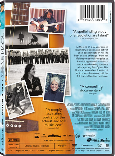 While initially crafted to chronicle the 2018-2019 farewell tour for Joan Baez, this remarkable and candid documentary offers a robust overview of the life and career of the folk music legend and activist, with copious archival and performance footage from her '60s heyday, and sobering insights from her personal trove of material revealing the hitherto unknown dark side from the peak of her success--and that of her upbringing. 113 min. Widescreen; Soundtrack: English Dolby Digital 5.1.