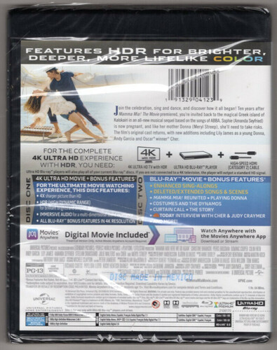 Set five years after the 2008 smash, this equally effervescent sequel finds a pregnant Sophie (Amanda Seyfried) about to re-open late mom Donna’s (Meryl Streep) hotel. As tune-filled flashbacks show a young Donna (Lily James) living on the picturesque Greek island as an expectant mother, the present offers Sophie the unexpected chance to meet the grandmother (Cher) she’s never known. "Fernando," "Knowing Me, Knowing You," "Mamma Mia" are among the songs. With Pierce Brosnan, Stellan Skarsgård, Colin Firth. 114 min. Widescreen; Soundtrack: English. Two-disc set.