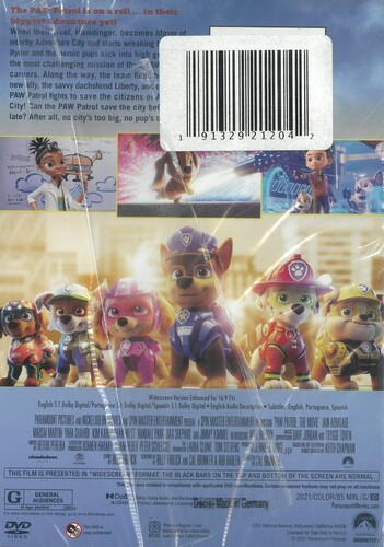 The furry first responders make their way to the big screen at last, as Ryder (voiced by Will Brisbane) and the pups answer a plea to set up shop in Adventure City, where the clueless Mayor Humdinger (Ron Pardo) is endangering his constituents with a series of self-aggrandizing stunts. Can a reticent Chase (Iain Armitage) overcome his bad experiences in the town and meet the challenge? Animated opus also features the voices of Marsai Martin, Tyler Perry, Jimmy Kimmel, Randall Park. 86 min. Widescreen; Soundtrack: English.