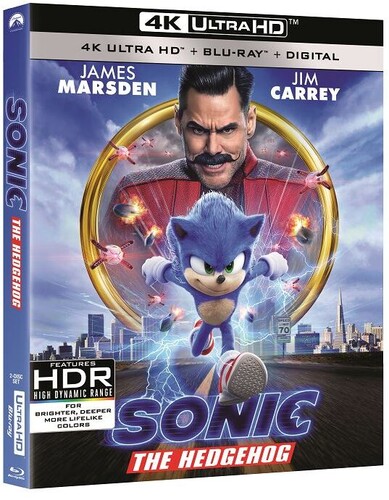After nearly three decades of whizzing across the videogame landscape, the spiny speedster streaks onto the big screen in this engaging mix of live action and animation. Having breached the barrier into our universe--specifically, small-town Montana--Sonic (voiced by Ben Schwartz) gets the help of a sympathetic cop (James Marsden) in outrunning the pursuing feds and their hired gun, crackpot scientist Dr. Ivo Robotnik (Jim Carrey). Tika Sumpter, Adam Pally, Neal McDonough also star. 100 min. Widescreen; Soundtrack: English. Two-disc set.