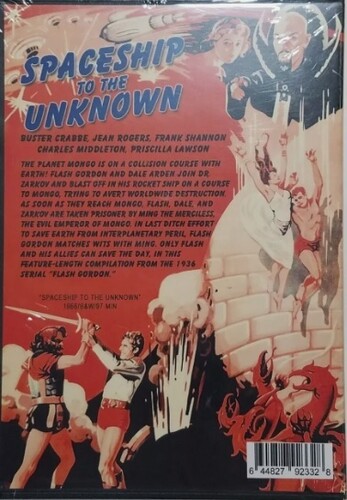 Condensed from the original 1936 "Flash Gordon" serial, this thrilling sci-fi adventure has Flash and company traveling to the planet Mongo to stop it from colliding with Earth. Upon arriving, they are captured by Ming the Merciless, who Flash must outwit if Earth is to survive. Buster Crabbe, Frank Shannon, Jean Rogers and Charles Middleton star. AKA: "Atomic Rocketship," "Rocketship." 73 min. Standard; Soundtrack: English.