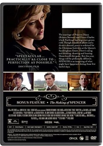 The marriage of Princess Diana (Kristen Stewart) and Prince Charles (Jack Farthing) has long since grown cold. Though rumors of affairs and a divorce abound, peace is ordained for the Christmas festivities at the Queen's Sandringham Estate. There's eating and drinking, shooting and hunting. Diana knows the game. But this year, thinks will be profoundly different. SPENCER is an imagining of what might have happened during those few fateful days.