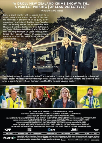 The 10th anniversary season of The Brokenwood Mysteries, sees Detectives Mike Shepherd (Neill Rea), Kristin Sims (Fern Sutherland) and Daniel Chalmers (Jarod Rawiri) continue to wrestle with the alarming murder rate in Brokenwood.