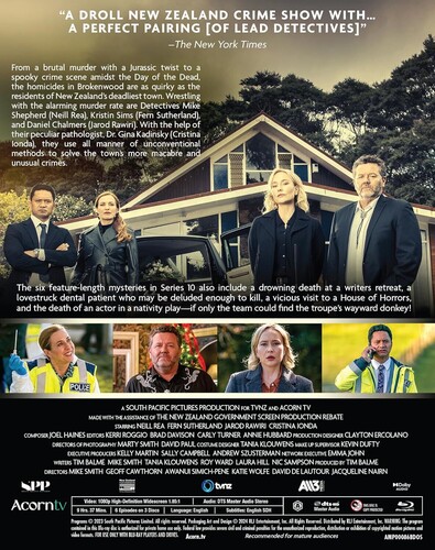 The 10th anniversary season of The Brokenwood Mysteries, sees Detectives Mike Shepherd (Neill Rea), Kristin Sims (Fern Sutherland) and Daniel Chalmers (Jarod Rawiri) continue to wrestle with the alarming murder rate in Brokenwood.