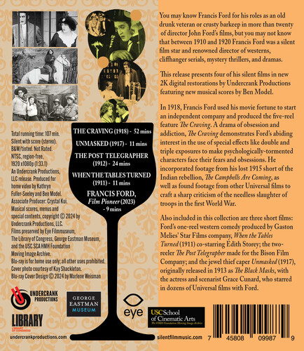 Brilliant chemist and recovering alcoholic Carroll Wayles (Francis Ford, who wrote and directed) developed a game-changing explosive--and ambitious colleague Ala Kasarib (Peter Gerald), who coveted the secret, plied Wayles with liquor in order to get it. Plagued with visions of global anarchy stemming from his creation's misuse, the sobered inventor faces a final confrontation with his betrayer. Ford's first independently produced feature co-stars Mae Gaston, Duke Worne. 50 min. Standard; Soundtrack: music score; bonus shorts "When the Tables Turned" (1911), "The Post Telegrapher" (1912), "Unmasked " (1917); featurette; more. Silent with music score.