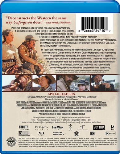 Danish immigrant Holger Olsen (Viggo Mortensen, who also wrote and directed) signs up with the Union Army and goes off to fight in the Civil War, leaving the woman he loves--French-Canadian Vivienne Le Coudy (Vicky Krieps)--behind at their Nevada home. What Vivienne endures while Holger is away, and what they both must face upon his return, are explored in this gripping, nonlinear western drama. With Solly McLeod, Garret Dillahunt, W. Earl Brown, Danny Huston. 129 min. Widescreen; Soundtrack: English; Subtitles: English.