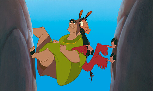 The most slapstick Disney animated feature in many a moon, this fast-paced romp features David Spade voicing Kuzco, the self-centered ruler of an Incan-like South American kingdom who, thanks to a potion from a fired advisor (Eartha Kitt), is turned into a talking llama. Cast out into the jungle, Kuzco is helped by a kindly peasant (John Goodman) and learns a lesson in humility. Songs include "Perfect World," "My Funny Friend and Me." Also voiced by Patrick Warburton, Wendie Malick. 78 min. Widescreen (Enhanced); Soundtracks: English Dolby Atmos, DTS HD 5.1 Master Audio, DVS, Spanish Dolby Digital 5.1, French Dolby Digital 5.1; Subtitles: English (SDH), Spanish, French. Two-disc set.