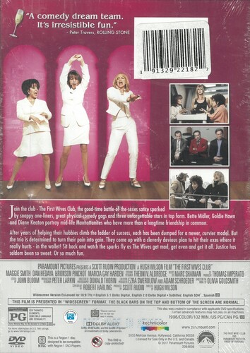 The fury of "a woman scorned" was never funnier than in this hit comedy starring Goldie Hawn, Diane Keaton and Bette Midler as former college friends who reunite and set out for revenge on the ex-husbands who, after becoming successful on their spouses' sacrifices, dumped them for younger "trophy wives." With Stephen Collins, Dan Hedaya, Sarah Jessica Parker, and Maggie Smith. 102 min. Widescreen; Soundtracks: English Dolby Digital 5.1, Dolby Digital Surround; Subtitles: Spanish; theatrical trailer.