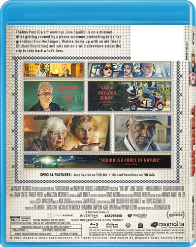 Ninety-three-year-old L.A. widow Thelma Post (June Squibb) didn't have much going on beyond her visits--albeit with his hand out--from grandson Daniel (Fred Hechinger). When a phone scammer claiming to be Daniel bilks her into mailing $10,000, she settles on a more direct course than the cops or a consumer hotline...by tracking the fraud to its source, and demanding her cash. Winning farce co-stars Parker Posey, Clark Gregg, Malcolm McDowell, and, in his screen farewell, Richard Roundtree. 98 min. Widescreen; Soundtrack: English.
